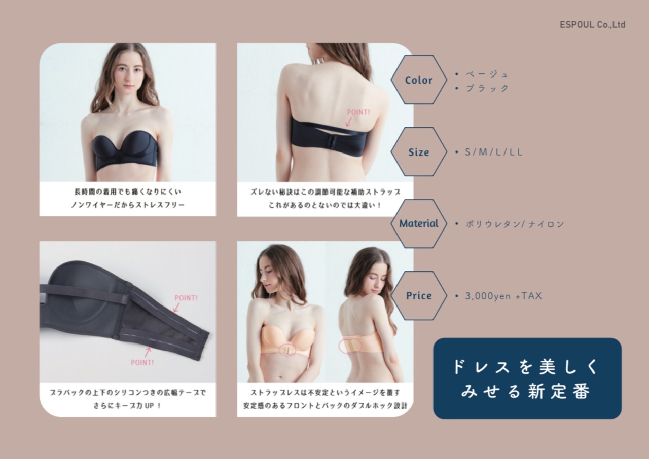 /カップ:一体型モールド/ストラップなし/バックベルトあり取り外し可(長さ調節可)