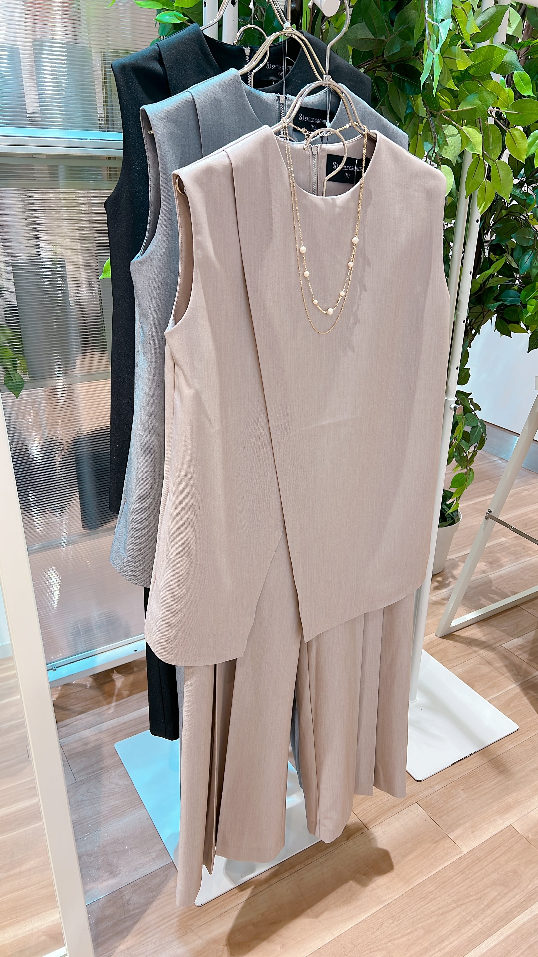 バックジップアシンメトリージレ&プリーツワイドパンツセット|マイルピア(パーティードレス)