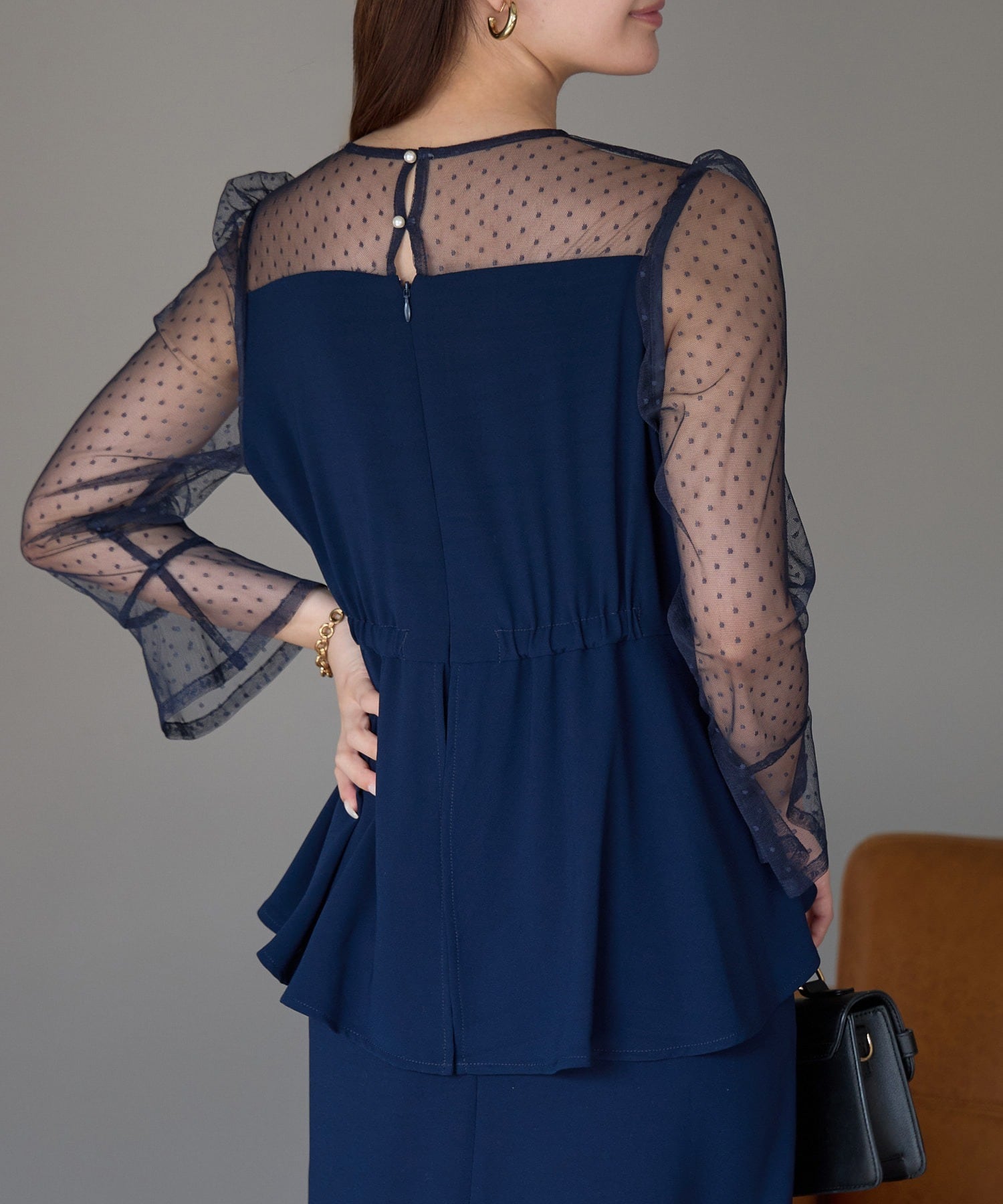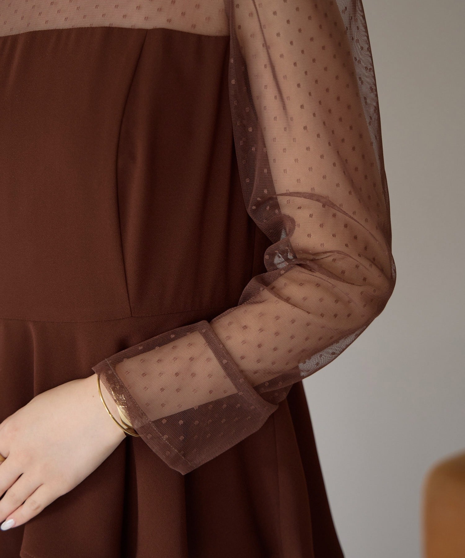 ドットチュールペプラムワンピースドレス|マイルピア(パーティードレス)