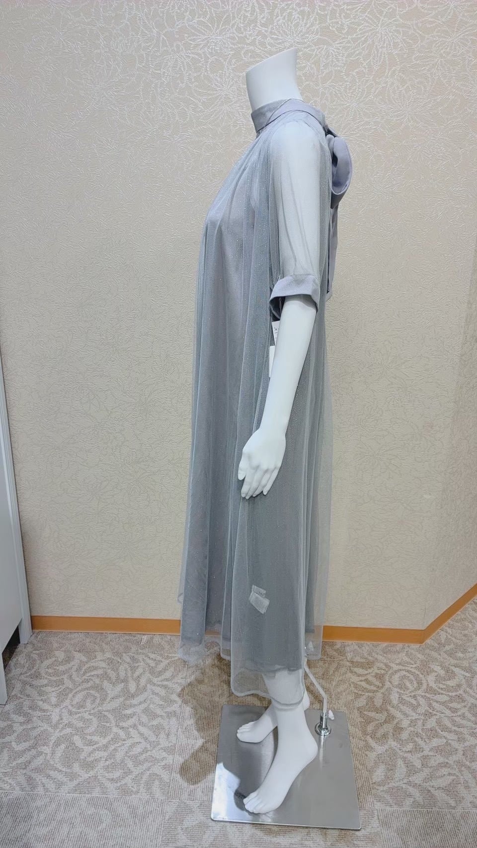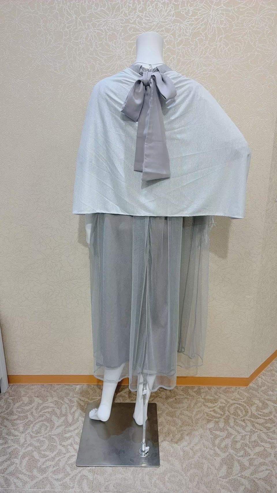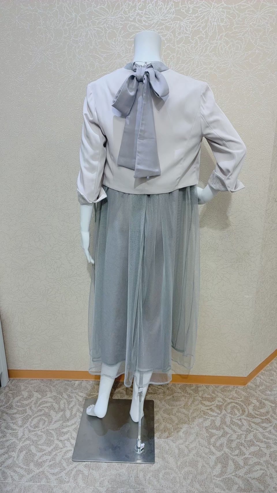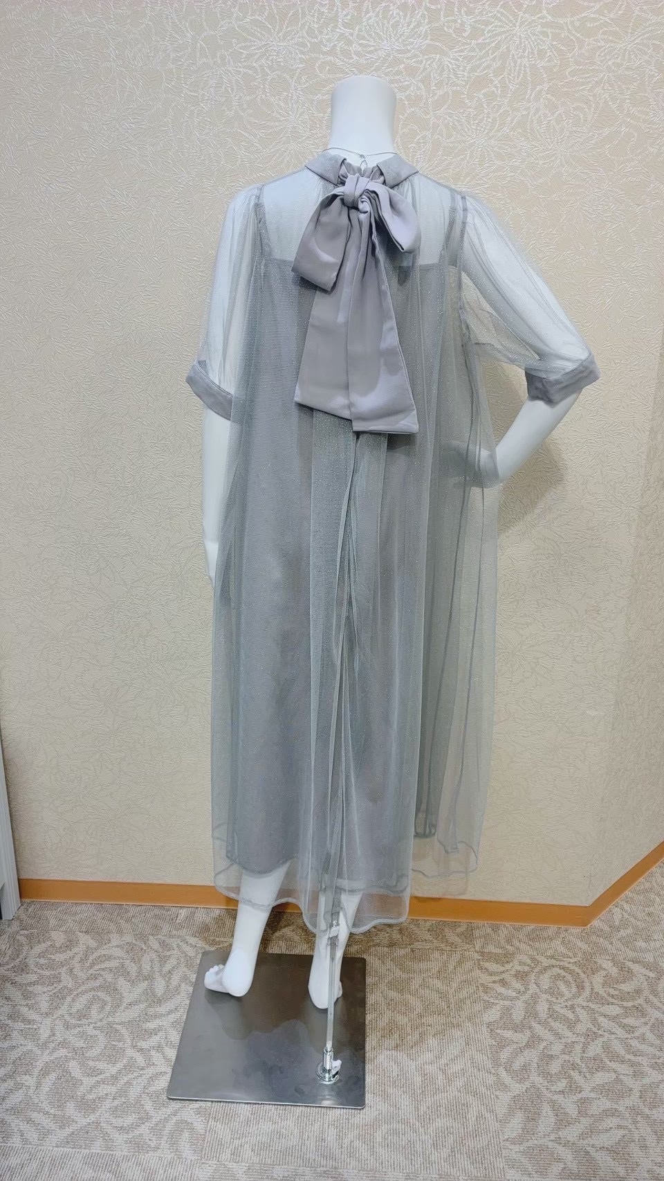 後ろリボンが付いたAラインドレス。