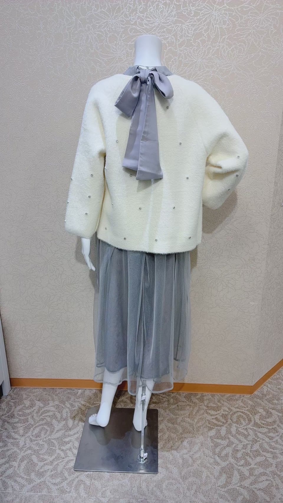 リボンは前で結んだり、取り外したり、