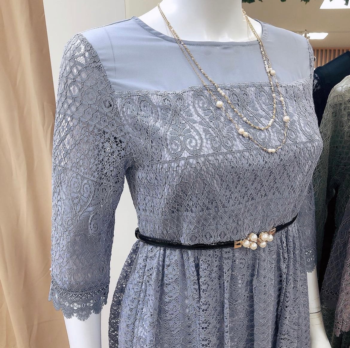 五分袖 総レースドレス|マイルピア(パーティードレス)