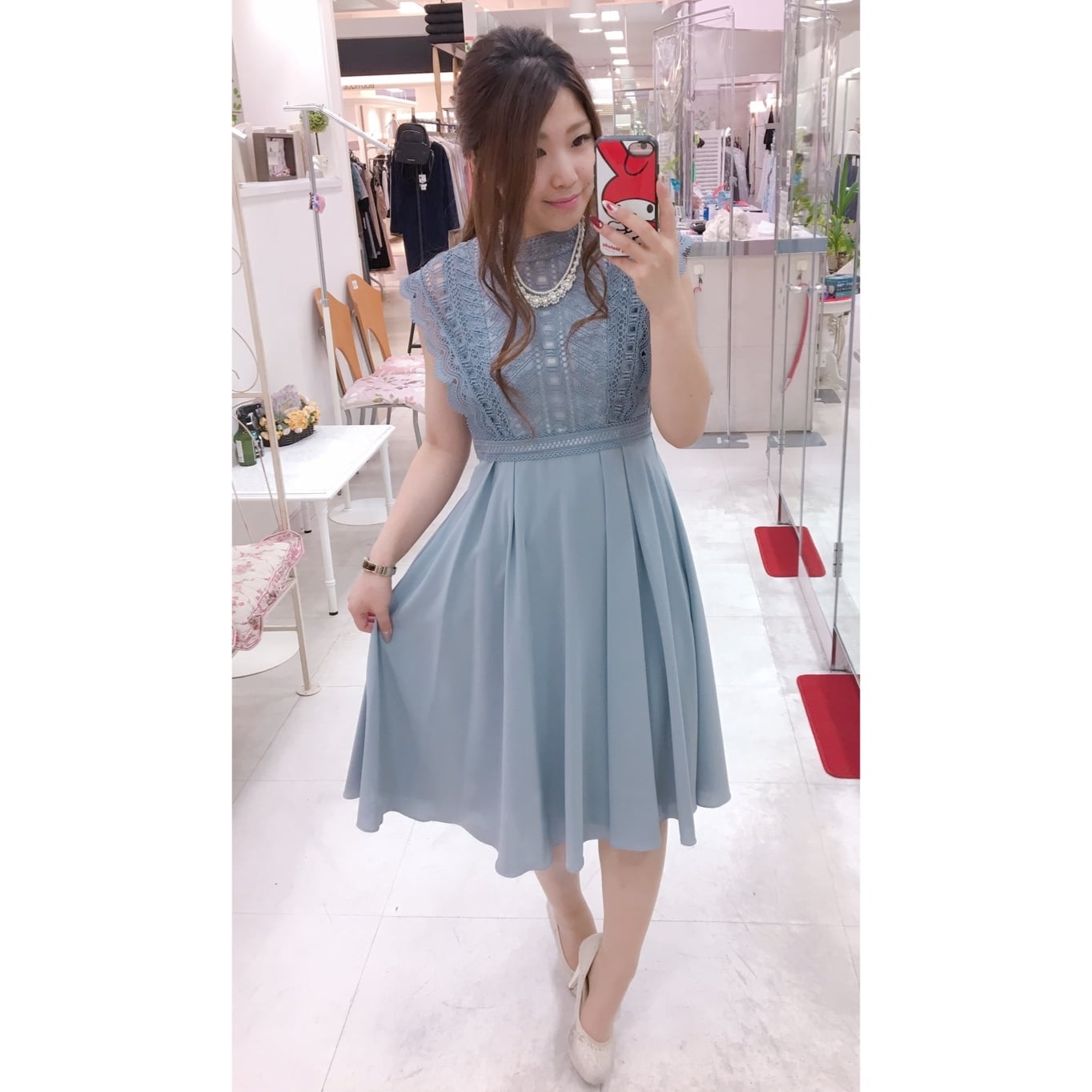 フレンチスリーブ はしごレースドレス|マイルピア(パーティードレス)