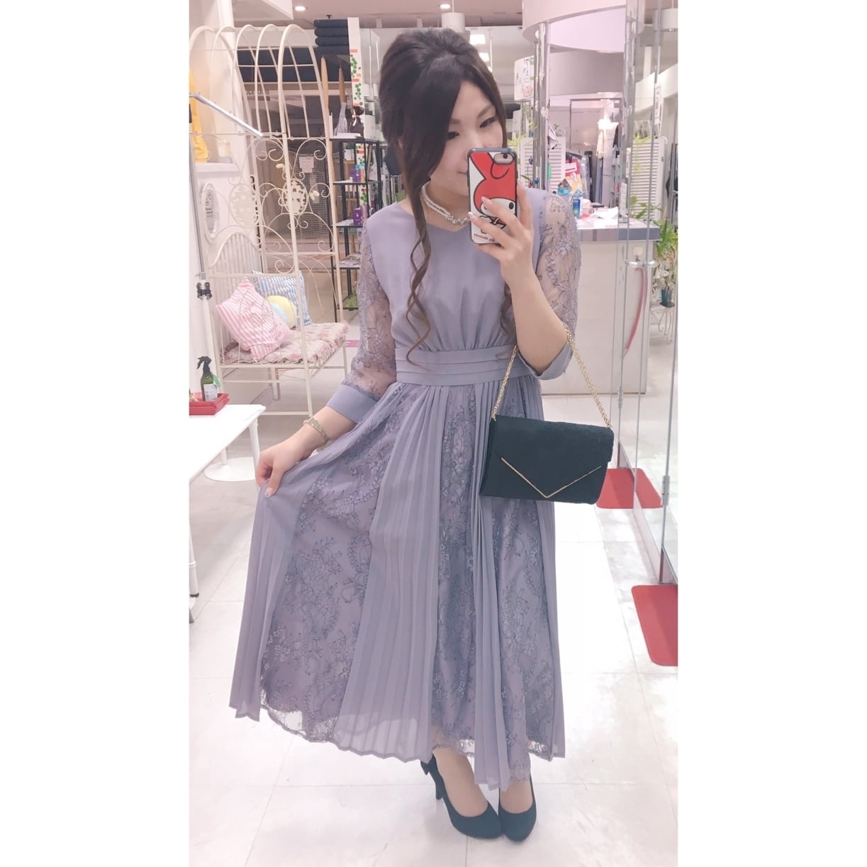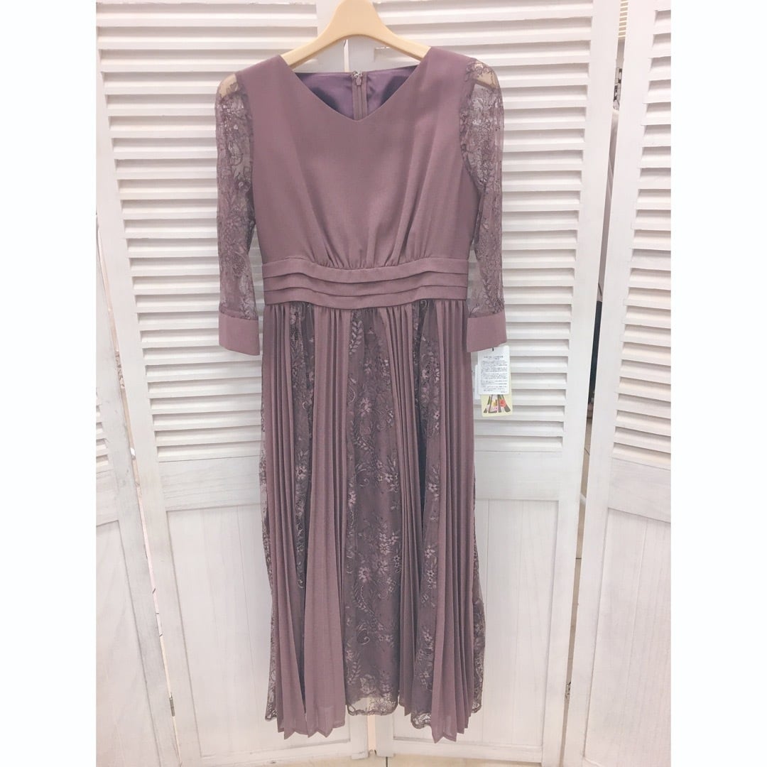 プリーツ×レースMIX 袖付きドレス|マイルピア(パーティードレス)